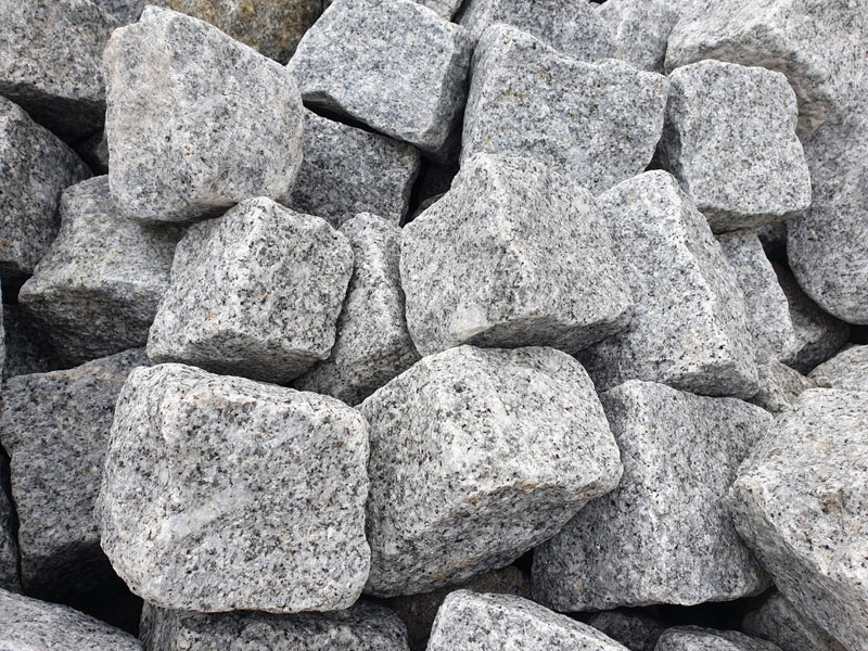 Granitsteine und rundes Pflaster für die Weggestaltung