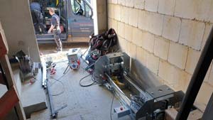 Aufstellen des Müllhaus und der Grundgerüste der Eingangsbereiche